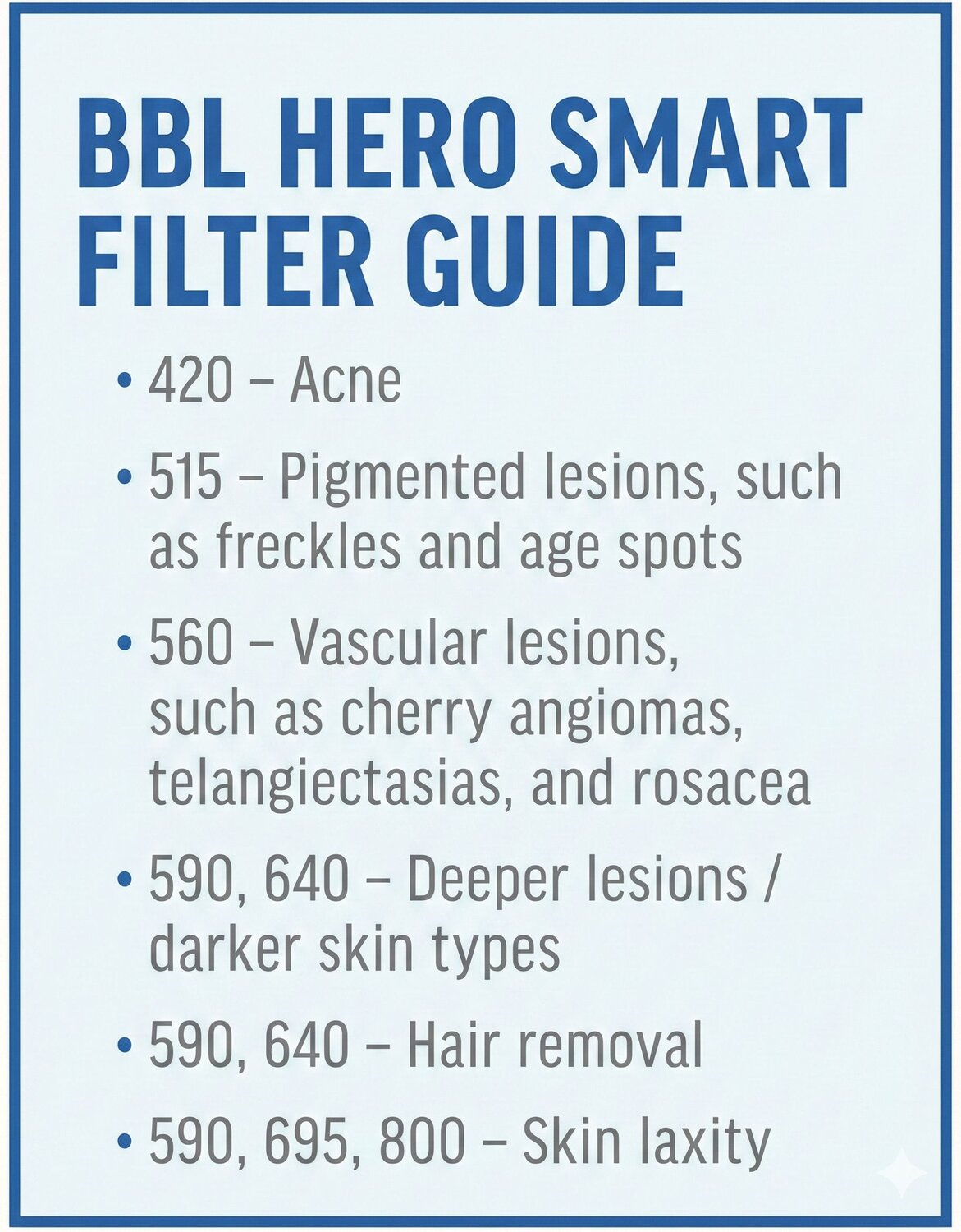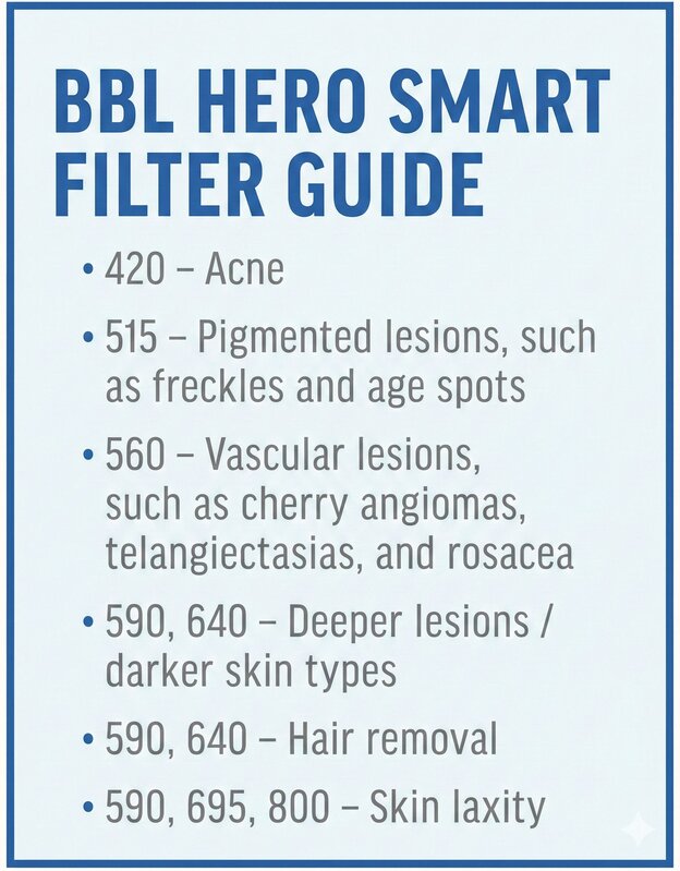 With BBL HERO, providers can treat the full face and large body areas such as the back, arms, and legs in just two to five minutes thanks to its large spot size (15x45mm), high repetition rate, easily exchangeable snap-on Finesse Adapters for hard-to-reach areas, and change-on-the-fly Smart Filters that enable treatment of various skin conditions with a single handpiece.